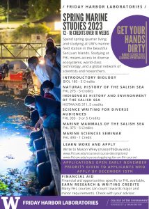 - Our Spring Marine Studies program offers several courses at the 100-300 level to choose from, including courses on introductory biology, natural history of the Salish Sea, indigenous and environmental history of the Salish Sea, marine mammals of the Salish Sea, and science writing.