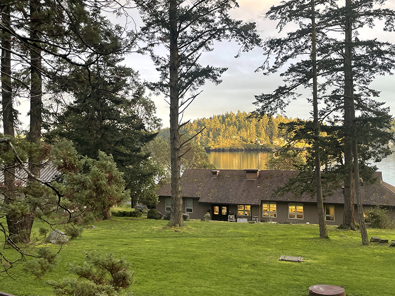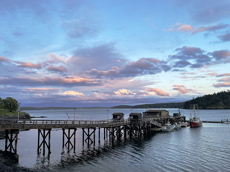 At dusk, I felt the sun setting over the mountains. The water seemed swept up in its light. From the smallest roof of the Whale Museum to a swarm of marbled murrelets in the water, the whole of Friday Harbor felt alive. I thought of how we are all, in a way, both vanishingly small yet significant; how we are all, in our own way, learning how to navigate difficult terrain. Far off, I noticed dark fins rising from the water — the killer whales were surfacing, blowing air out into the darkening sky. I could even hear them now, surfacing to breathe. Light raindrops began to fall. As the magic-hour light faded into dusk, all that remained was the sound of water moving out of the blowholes of the whales. I thought of my own grief — how lonely and silent it is — but it is okay to think deeply about all we have lost and are losing, even if the way we respond is filled with mystery and wonder.