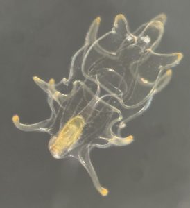 When I pipette larval sunflower stars in lab, I think of how Dr. Jason Hodin says people fail to understand the importance of juvenile things. I think even things I can only see under a microscope — such as an urchin pushing its spines into the body of a sunflower star, seeming to fight it — respond to the same evolutionary processes as a killer whale pushing salmon into a crevice in a rock face. The interaction of creatures tells the greater story, whether they are tiny or gigantic.