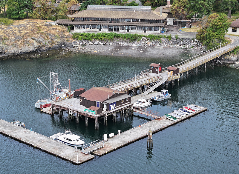 Perhaps the two most important things for a high-functioning marine lab are an excellent seawater system and some kind of boat fleet. As any boat owner knows, boats (and places to keep them) are a handful – FHL has a small but mighty waterfront team who look after this very important facet of our operations. This essay celebrates that team, adding to previous essays about our Maintenance and Custodial teams (Aug. 2022), Dining Hall staff (Aug. 2023), and Front Office staff (Feb. 2025). Future Tide Bites will introduce you to other FHL team members, including fiscal and student-oriented staff.