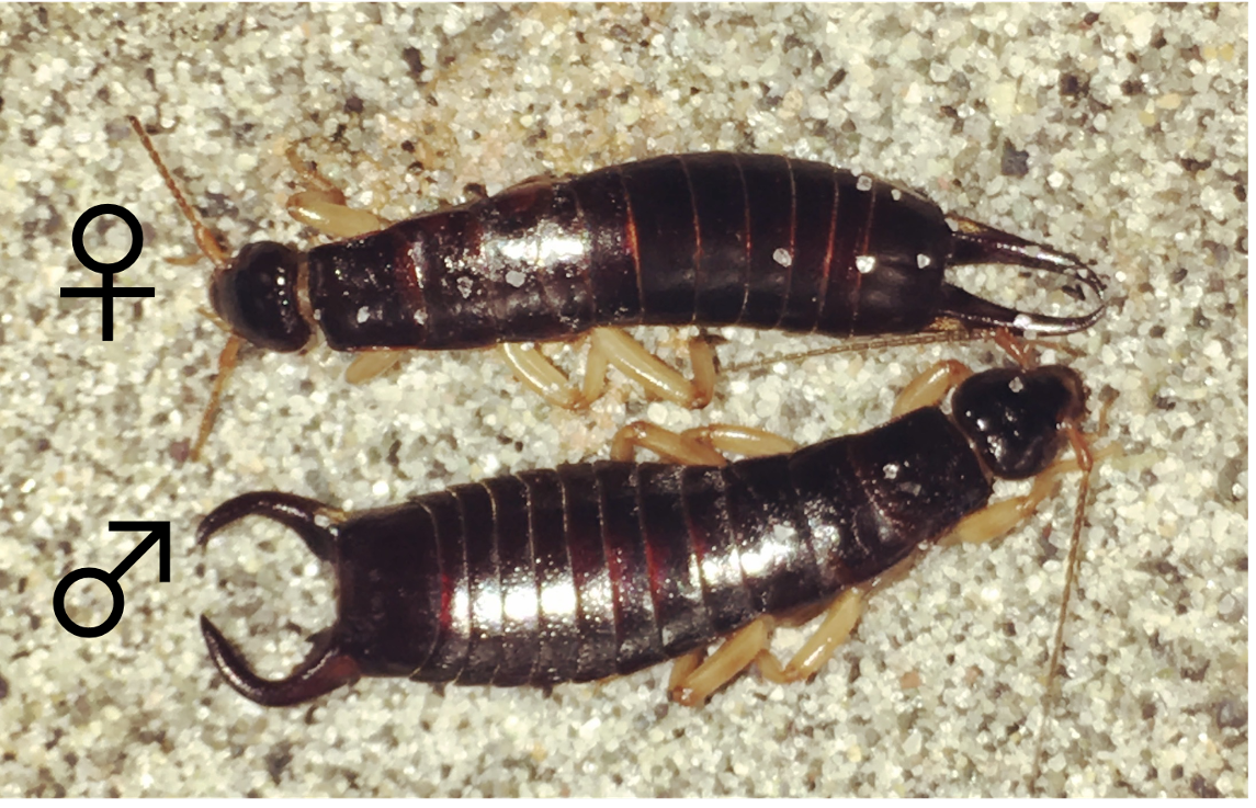 My research involves the behavior of arthropods, a highly abundant group whose extraordinary evolutionary success can be partly attributed to the remarkable diversity of their mating systems. Sexual selection, defined as differences in reproductive success due to competition for mates, often manifests itself in morphological differences between sexes (i.e., sexually-dimorphic traits) as the result of female choice for male traits, male-male battles for females, or a combination of both. The maritime earwig (Anisolabis maritima) is an insect well-suited for such behavioral studies because males differ markedly from females in body size (males are more variable in size, and often larger, than females) and weaponry (males possess asymmetrical, curved forceps whereas females have straight forceps). Sex, body size and forceps play important roles in interactions among earwigs, and A. maritima males and females differ fundamentally in their aggression towards conspecifics. Males typically resolve their disputes non-lethally by squeezing each other’s abdomens as a means to assess size, strength and fighting ability. Females, on the other hand, often kill conspecifics while vigorously guarding their nests, and larger females defend their eggs against conspecific cannibalism more effectively. This summer we will continue lab and field investigations of the social and reproductive behavior of the maritime earwig by observing same-sex and mixed-sex groups to examine how sex, size and weaponry affect group dynamics and social networks.