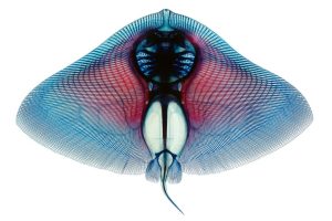 Batoids have complex undulatory patterns when propulsing themself. Their complex fin structure with +-100 finrays and thousands of radials connects to tendinous muscle sheets. The goal of this project is to find out how much of their motion is passively generated. We will experimentally investigate this question by quantifying the motion of batoids at different actuation frequencies using camera tracking. Additionally, we will measure the thrust produced and the flow field using a force transducer and Particle Image Velocimetry. When we have quantified the biological specimens, we will try to emulate it using artificial batoids. The project will include testing in a flume (water tunnel), CT-scanning specimens, Python coding, 3D modeling, and manufacturing techniques like 3D printing, laser cutting, and silicone molding.