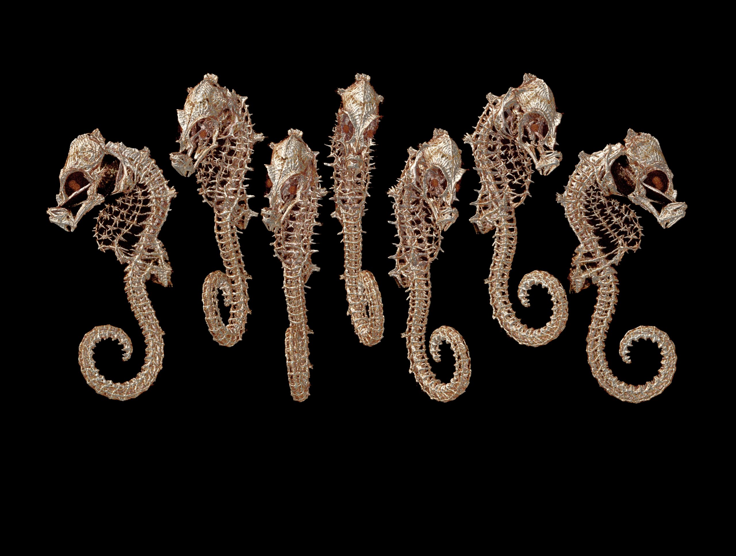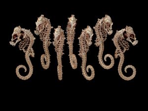 Seahorses, pipefish, and some of their relatives can generate ultra-fast feeding strikes by storing elastic energy in their tendons and releasing it abruptly. This mechanism enables these fish to complete feeding strikes within a millisecond or two—almost ten times faster than any other fish. While the location of energy storage is understood, the mechanics of power transmission through the head remain unclear. Additionally, the process by which the system is latched and triggered is still a mystery. To address these questions, we will conduct detailed morphological measurements across a variety of fish species within the clade that includes seahorses. We will use CT scans to identify and measure the parts of the skull that transmit motion and power during the strike. These measurements will help parameterize a mechanical model of force transmission and investigate how the diversity in shape and size of these fish influences their feeding capabilities.